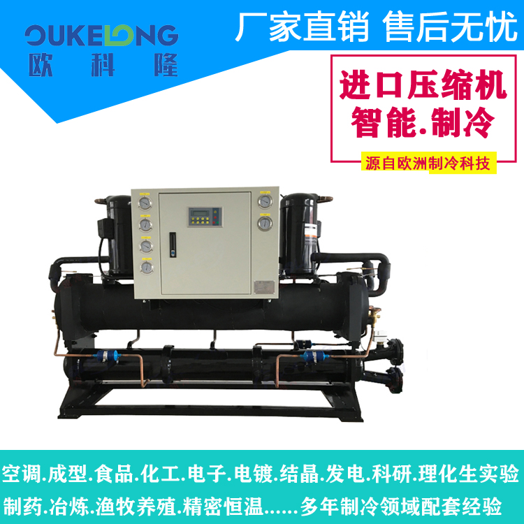歐科隆牌水冷開放式冷水機(jī)組適用于化工、電鍍、油墨、光纖、電子、醫(yī)療、工業(yè)設(shè)備冷卻、熱源冷卻、混凝土攪拌站、制造橋梁、(制混凝土、制橋梁專用冷水機(jī)型,性能比普通冷水機(jī)型高出30%,可以定做移動(dòng)式冷凍機(jī)組)等多種場(chǎng)合。