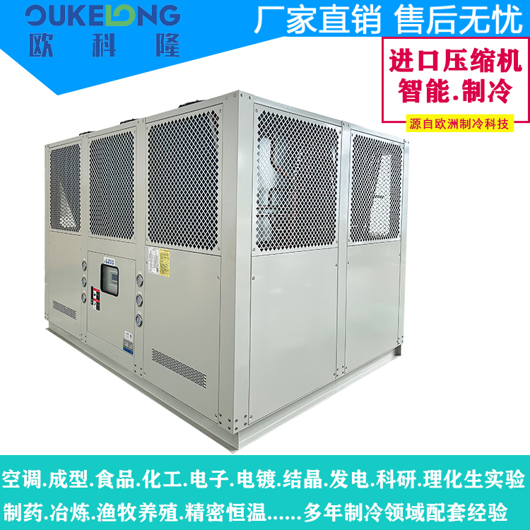 歐科隆制冷60HP風冷式冷水機型號是:OKL-60AT,是一款工業(yè)級大功率制冷設(shè)備,專為連續(xù)高負荷生產(chǎn)環(huán)境設(shè)計。該機型采用創(chuàng)新風冷散熱架構(gòu),突破性實現(xiàn)60匹(約180kW)制冷能力,無需配置冷卻塔,大幅降低用水成本和安裝復雜度。