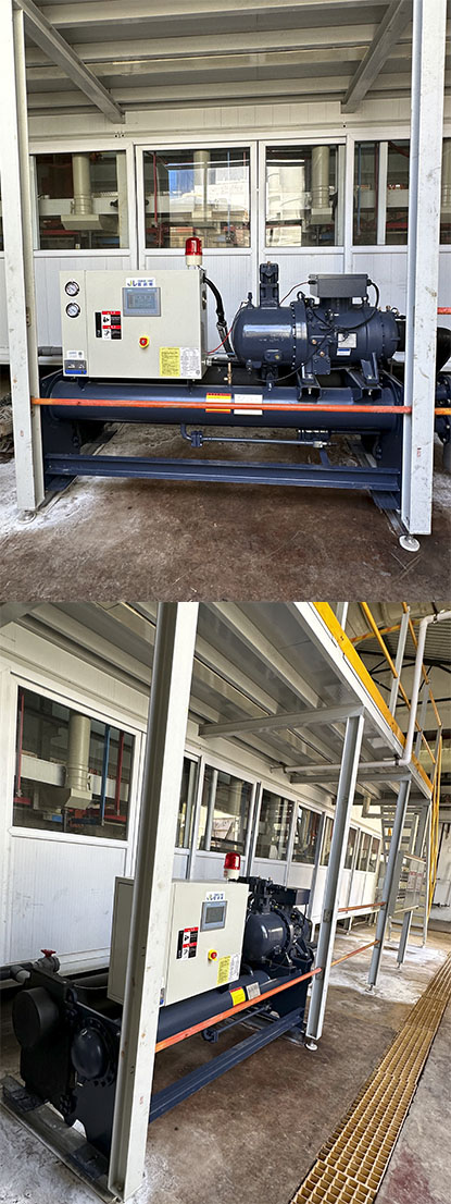 本案例是十堰二汽電鍍生產(chǎn)線配套耐腐蝕冷水機(jī),該機(jī)型為耐腐蝕換熱器,因?yàn)殡婂円壕哂袠O強(qiáng)的腐蝕性如果采用普通材質(zhì)換熱器會(huì)出現(xiàn)換熱器腐蝕穿孔的現(xiàn)象。該機(jī)組控制器為西門子1500控制器,可并入用戶整廠區(qū)的大系統(tǒng),便于對(duì)整個(gè)系統(tǒng)的管理和操控。