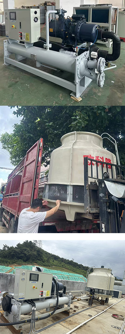 下圖案例為水冷螺桿式冷水機應用于山東某大型化工企業(yè),給反應釜夾套降溫冷卻。歐科隆水冷螺桿式冷水機的兩器擁有BR1壓力容器許可證和能效證書,制冷量更充足使用更節(jié)能,材質更優(yōu),使用壽命更長。